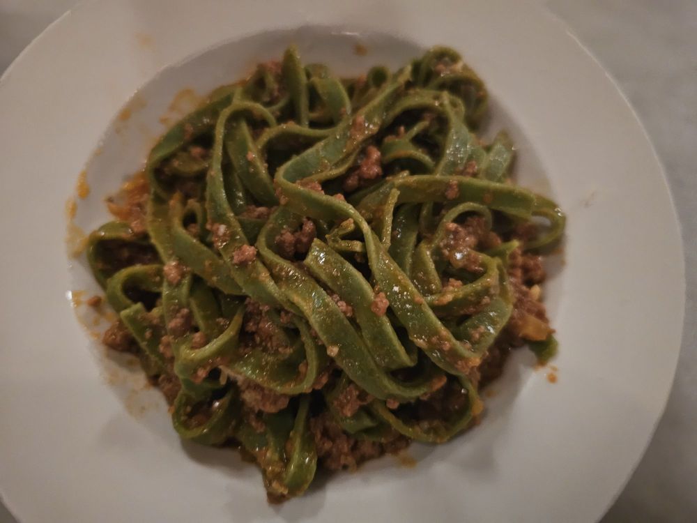 spinach tagliatelle, beef, veal & pork ragù, parmigiano